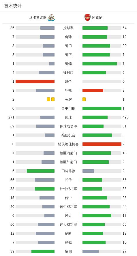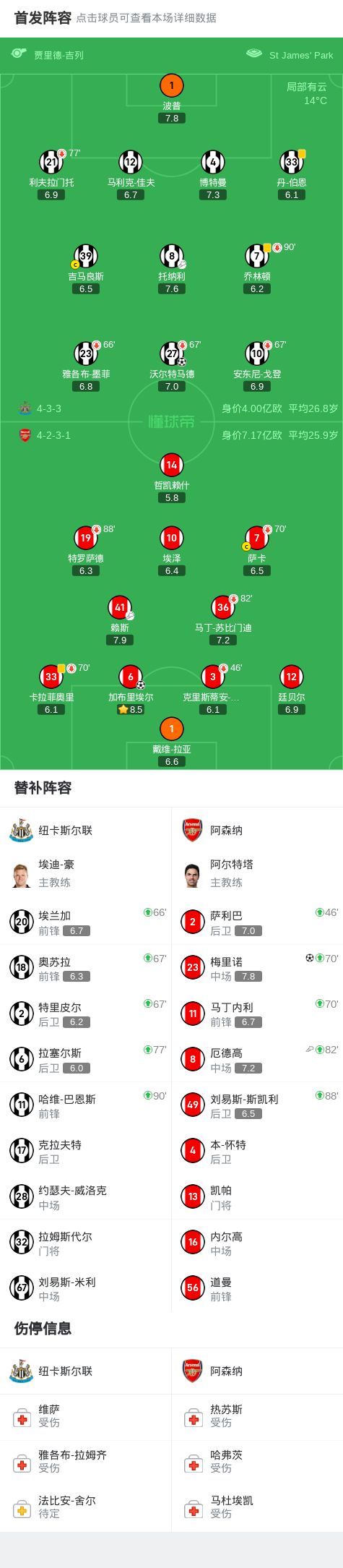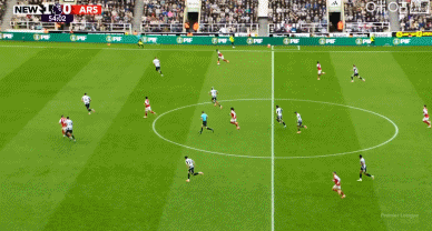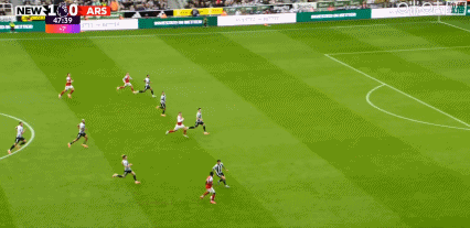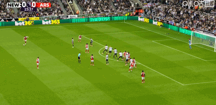 第34分钟,托纳利起传中,沃尔特马德头球破门,纽卡1-0领先阿森纳!