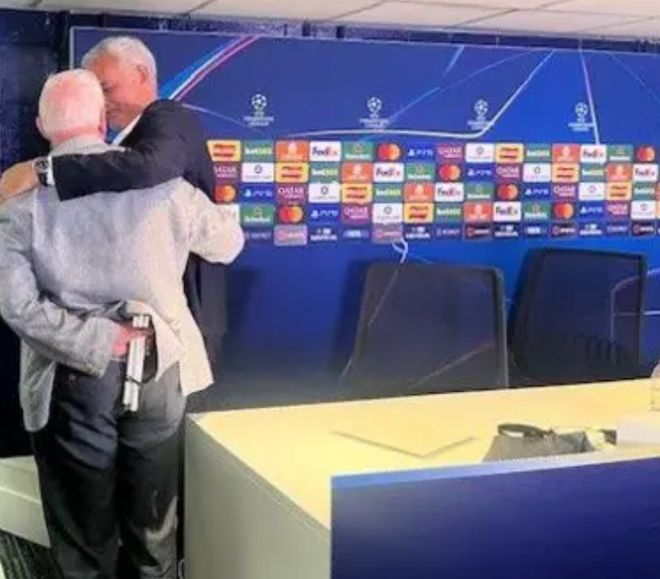 在发布会期间,媒体会议室里,很多蓝军的老员工都赶来,问候穆帅这个昔日同僚。其中的代表人物是布莱恩·普尔曼,这位2024年退休的职员,为切尔西工作了56年。当普尔曼出现在穆帅面前时,狂人笑问:“我最喜欢的饼干呢”?普尔曼掀开茶巾,送上了六块奶油夹心饼干。六块饼干不算什么,却让穆帅非常开心,他欣然笑纳,并与老友深情拥抱。